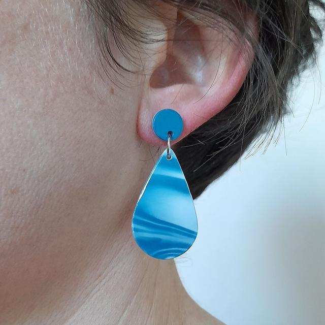 Boucles d’oreilles en porcelaine – Gouttes - Bleu émeraude - Brillant