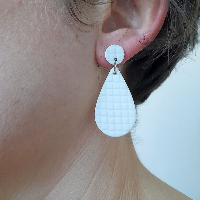Boucles d’oreilles en porcelaine texturée – Gouttes - Blanc mat